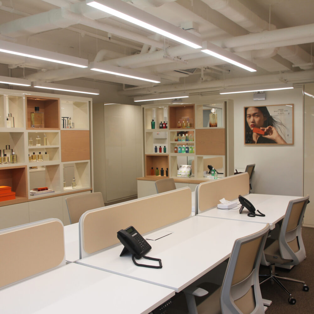 Our office pendant linears enhance the office space and showcase the brand’s exquisite products and design aesthetic. It contributes to an inviting and inspiring work environment that reflects the elegance and prestige of the Hermès brand.
