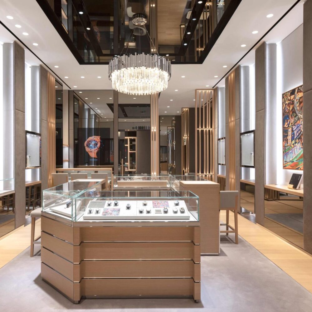 The newly opened Hublot boutique in Wuhan showcases a sophisticated environment designed to enhance the luxury shopping experience. Our lighting fixtures, featuring a mix of 3000K and 4000K hues, illuminate the space, highlighting the rich textures and premium materials throughout the boutique. The warm 3000K lighting creates an inviting atmosphere, accentuating the luxurious feel, while the cooler 4000K light enhances the clarity of the displays, allowing the intricate details of Hublot’s exquisite timepieces to shine.