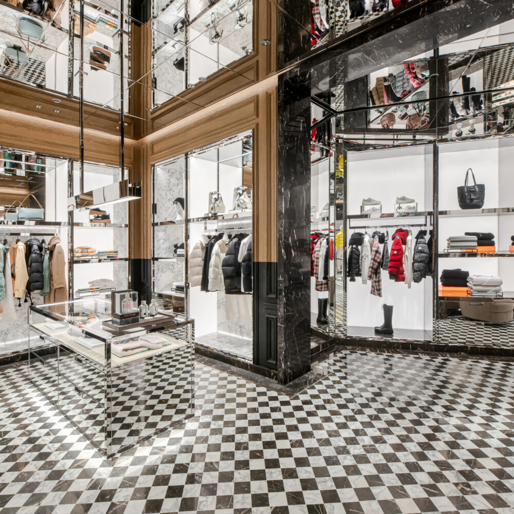 We have been entrusted with illuminating Moncler’s rollout in China, a testament to our expertise in delivering tailored lighting solutions that accentuate the brand’s stores, creating a visually captivating environment that complements Moncler’s renowned fashion offerings. With our high-quality lighting fixtures and meticulous attention to detail, we strive to enhance the retail experience, ensuring that Moncler’s presence in China is as captivating as its global reputation.