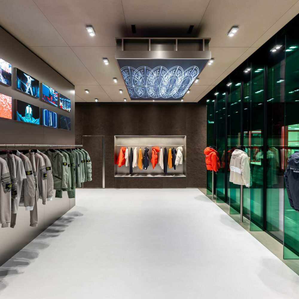 Stone Island’s new location in Taikoo Li Chengdu, designed in collaboration with OMA/AMO, showcases the importance of incorporating signature architectural lighting solutions into a boutique’s design.