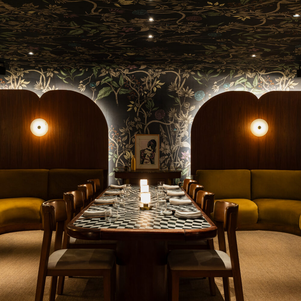 Uma Nota is a Brazilian Japanese restaurant concept that has found success in Hong Kong and Paris, now open in Manila. Designed by The Odd Duck Studio with lighting by Baseline Lighting Design Studio, we provided innovative architectural lighting solutions. The restaurant features four distinct areas: the living room, bar, Tropicalia room, and Meiji room. The living room showcases a striking hanging tree sculpture, enhanced by our Neon Flex lighting around large arches. Our recessed Opli trimless downlights offer cozy illumination. The bar countertop appears to float with our undercounter Neon Flex lighting, adding depth to the drink shelves. The Tropicalia room captures a vintage Brazilian vibe with illuminated vinyl and art displays, while the Meiji room features Japanese-inspired wooden accents, both lit by our COB strip lights. Our Opli trimless downlights maintain a clean ceiling aesthetic.
