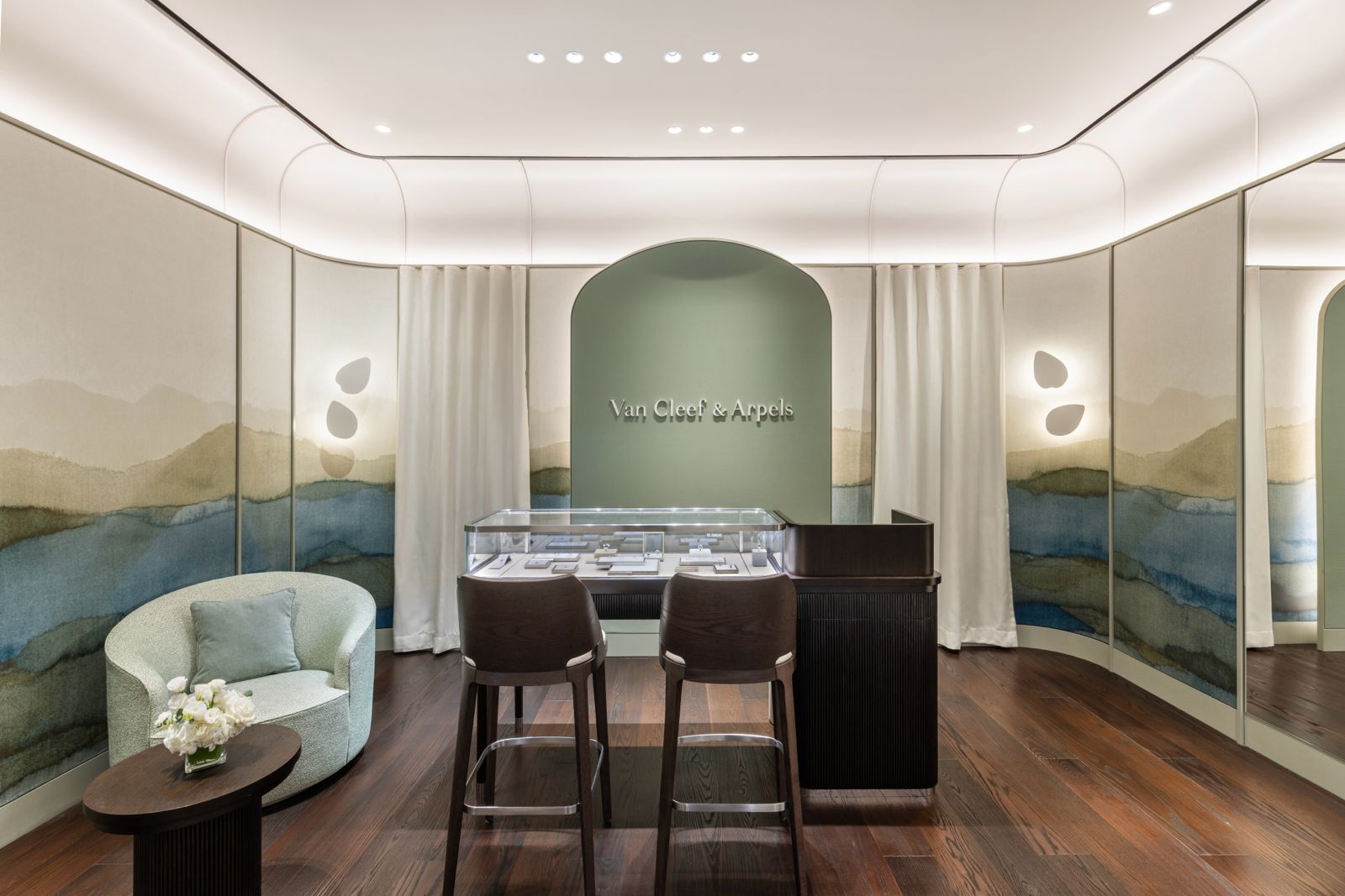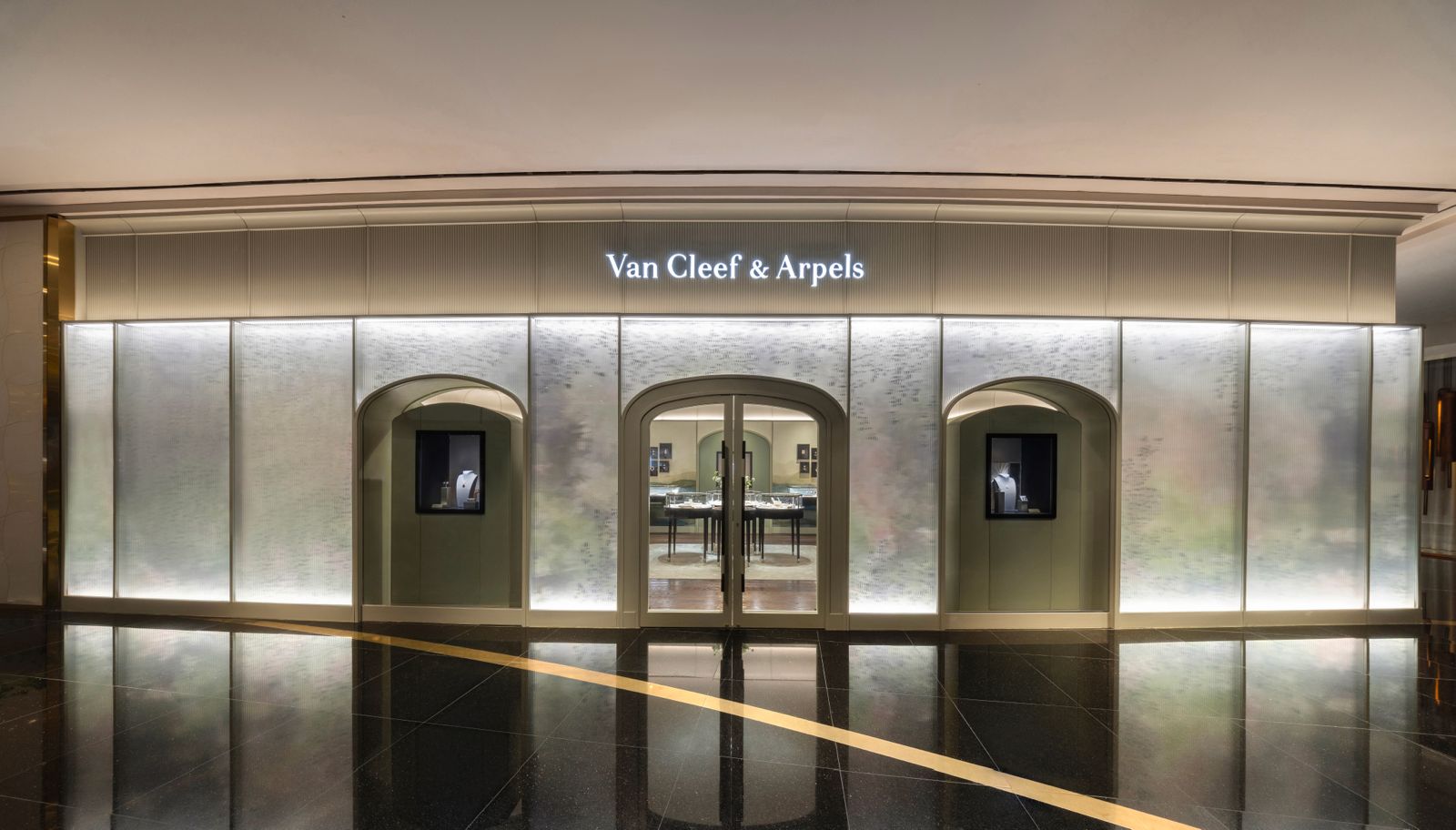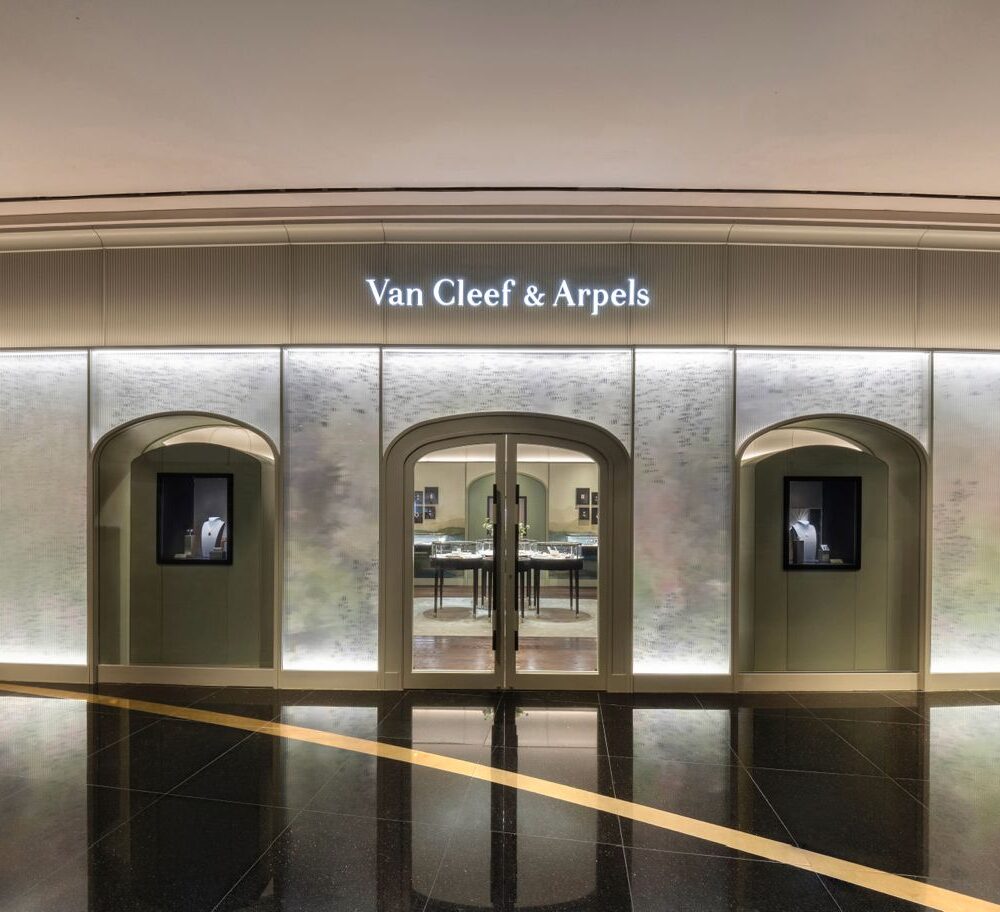 The newly opened Van Cleef & Arpels boutique in Icon Siam, Bangkok, beautifully showcases the Maison’s luxury and craftsmanship. Our lighting solutions significantly enhance the boutique’s ambiance, creating a welcoming yet opulent environment. Our Opli downlights are installed in the ceiling, while our Neon Flex lighting illuminates the exquisite jewelry in the displays. To ensure the boutique stands out, SMD lights with profiles were installed on the façade, creating a striking visual impact. This collaboration has resulted in a stunning space that invites customers to immerse themselves in the luxury of Van Cleef & Arpels.