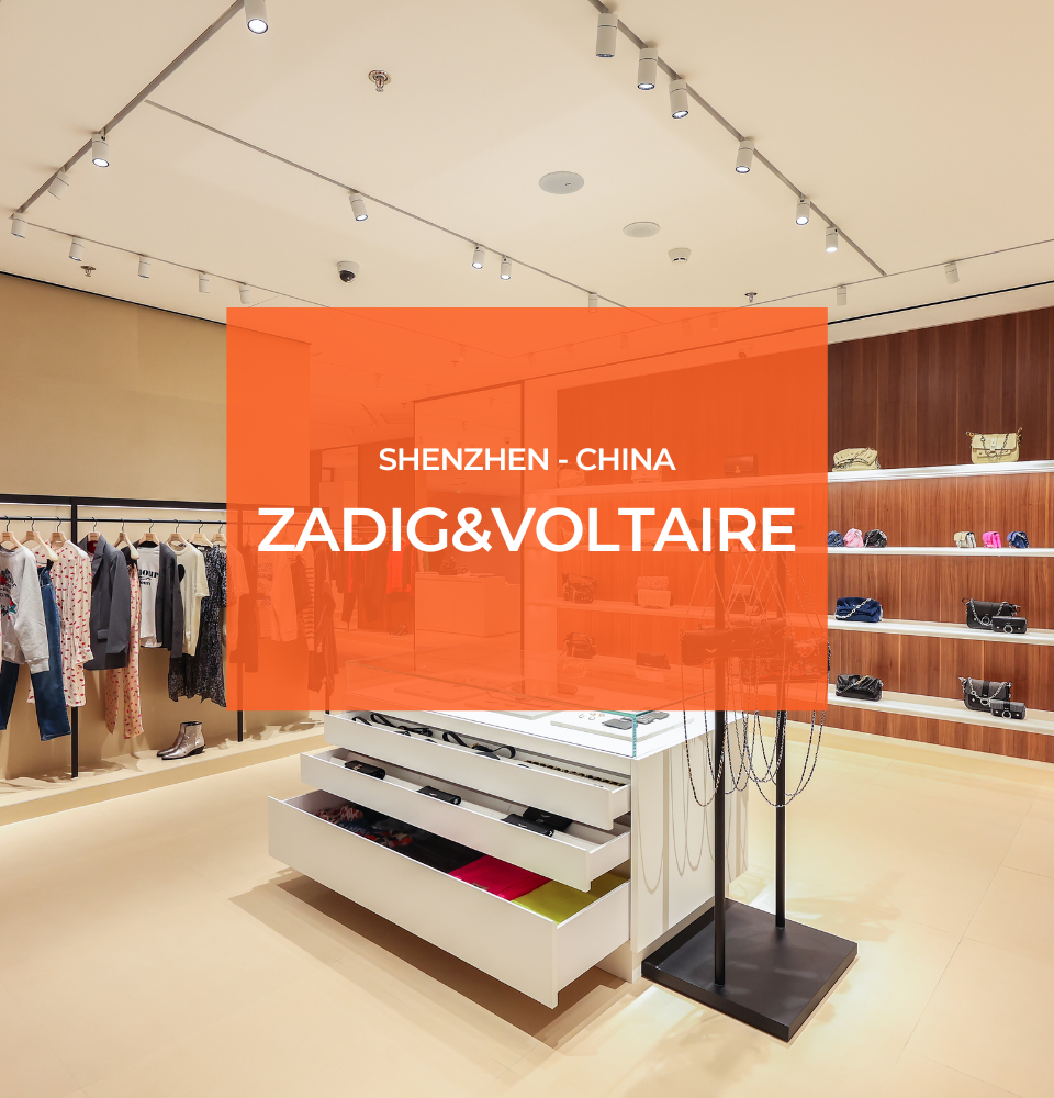 Our Devon tracklight is implemented across multiple Zadig&Voltaire stores, namely in Shenzhen. It creates a warm and inviting atmosphere that showcases the brand’s edgy and contemporary fashion collections, enhancing the overall retail experience for customers.